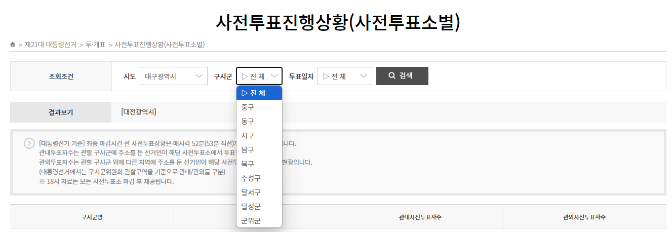 - 실시간 대구 사전투표율: 중앙선거관리위원회